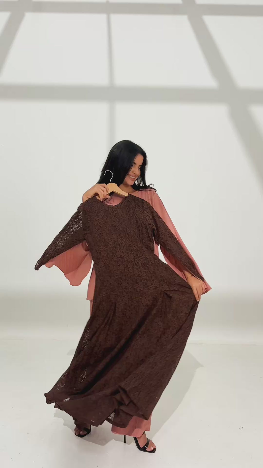 Evaleen Brown Panel Net Dress