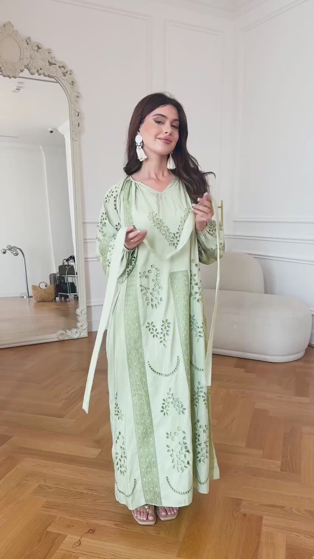 Emelith Green Cutwork Panel Dress