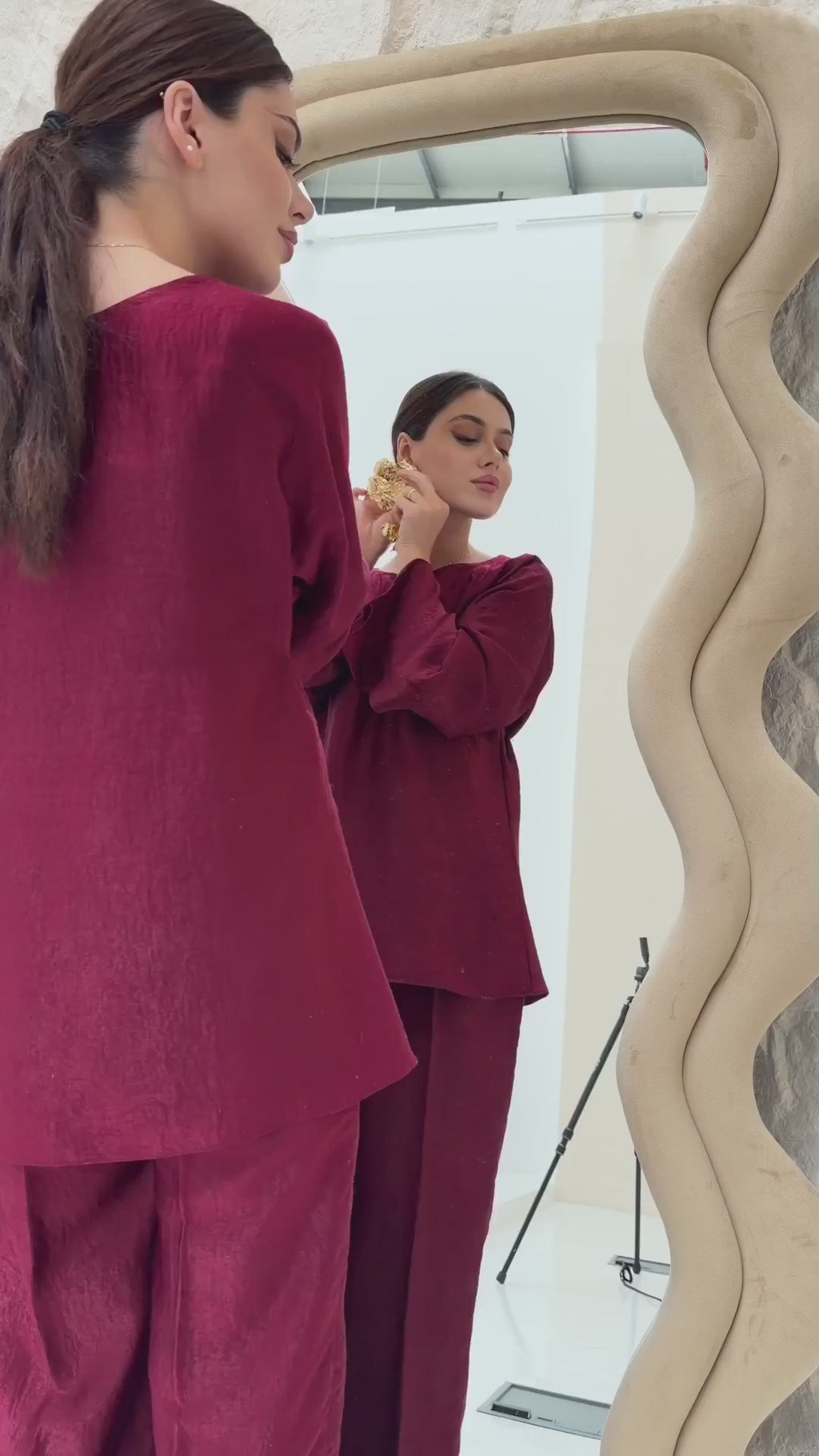 Hayze Maroon Velvet Silk Shirt