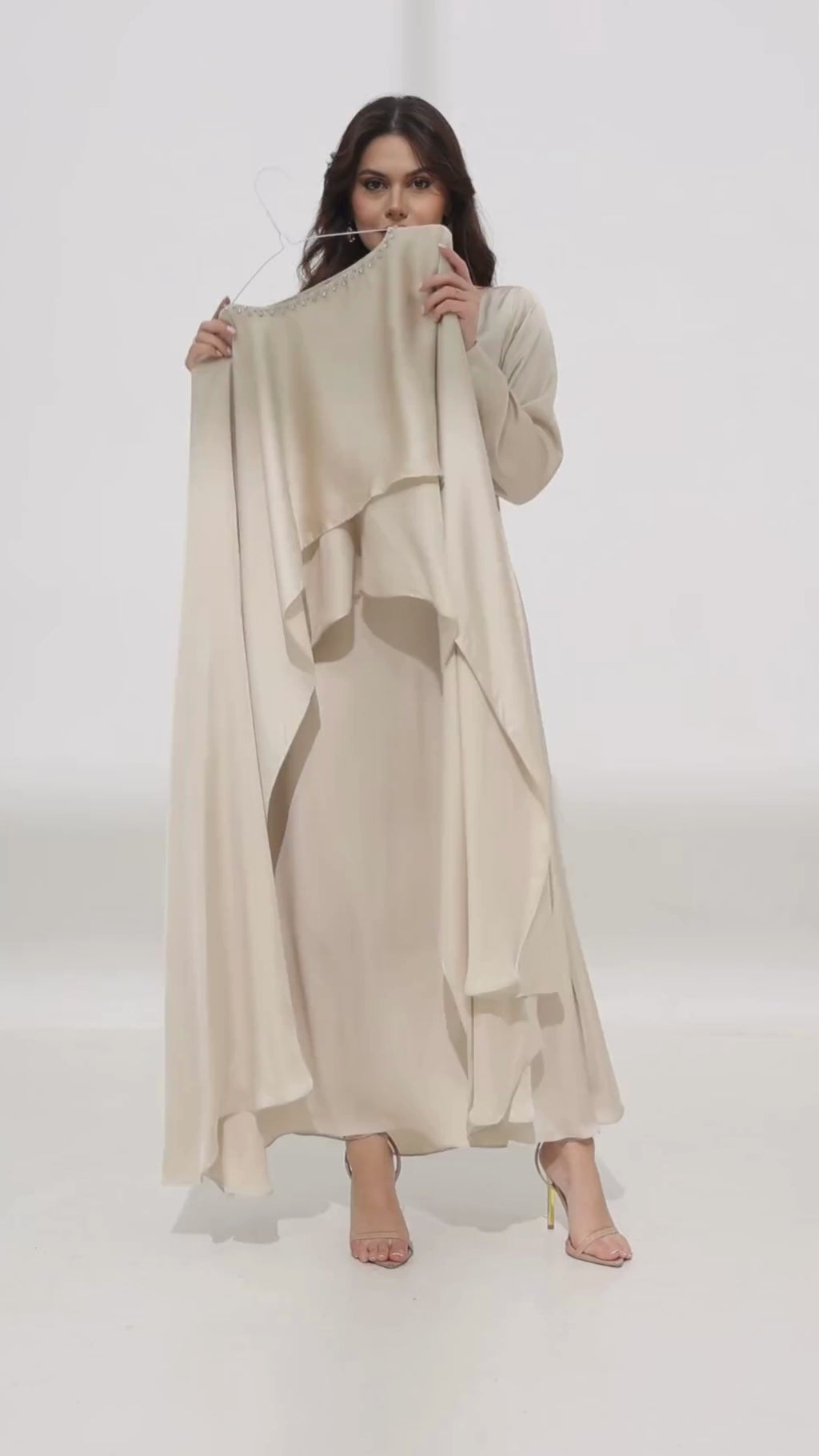 Ferisha Light Beige Embellished Cape And Dress